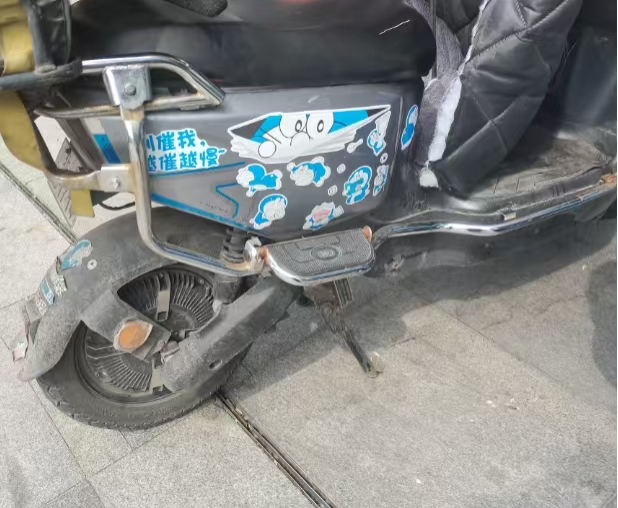 一名骑手的车上贴着“别催我”的贴纸