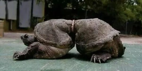 它估计在小时候被塑料垃圾套住,随着长大,身体长成了葫芦。