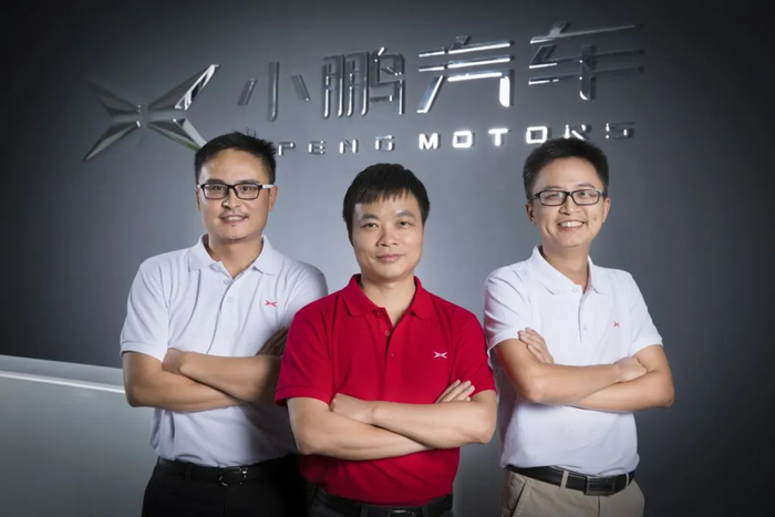 小鹏汽车的三位联合创始人。左起:何涛、何小鹏、夏珩。