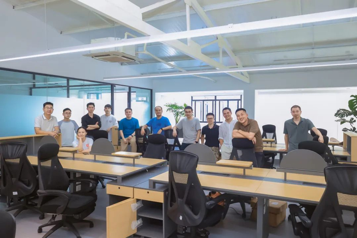 2024 年 8 月,何涛(后排左起第 5 位)的新创业公司 “OMOWAY” 搬进了办公室。他右侧是 OMOWAY 联合创始人、小鹏前副总裁矫青春。
