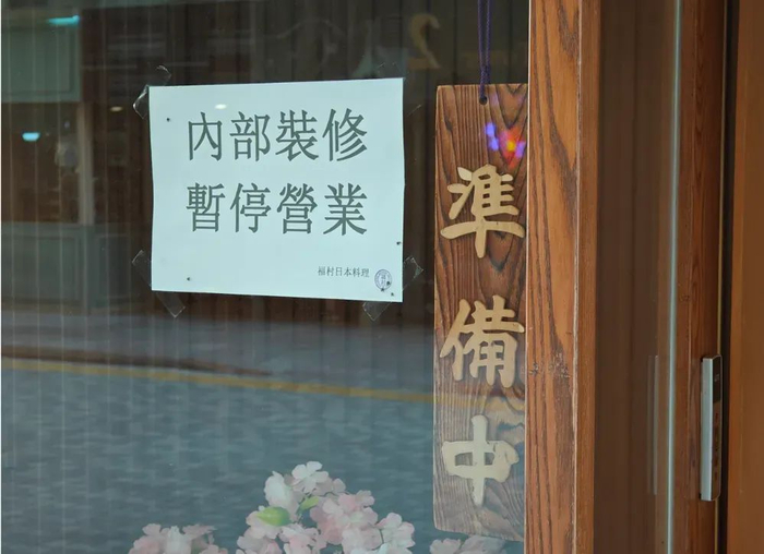 间左右的日式餐厅。图为当年9月一家相关店铺贴出的暂停营业告示。摄/焦建