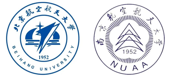 航空航天院校如北京航空航天大学与南京航空航天大学,徽标上往往带有飞机或火箭造型;
