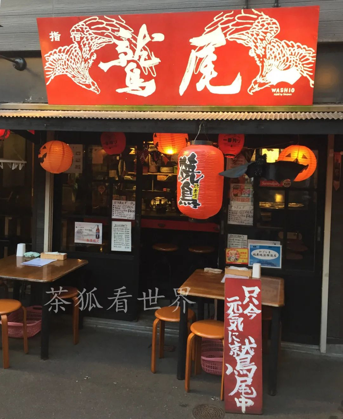 传统派的代表是「鷲尾」,是一家做焼き鳥的店,店内也只有五六个座位,是全球独此一家的小店。但招牌的整体色调、书法、图案设计,都非常讲究,有一种连锁大牌餐饮集团的气势。