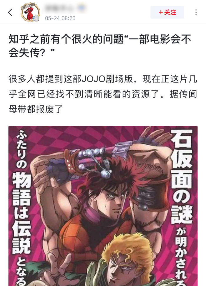 前两天,差评君刷到一个帖子,说剧场版《 JoJo的奇妙冒险:幻影之血 》,全网找不到能看的资源。