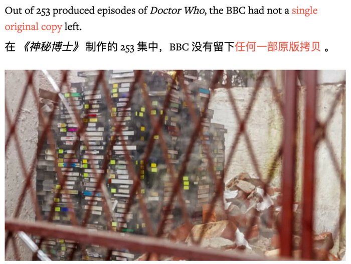 最知名且最骚的例子就是 BBC,他们亲手洗掉了 200 多集国宝级科幻剧《 神秘博士 》的母带。