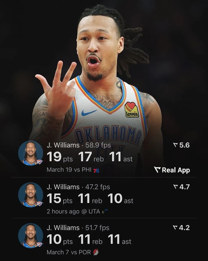 如果杰林-威廉姆斯能够得到场均36分钟的上场时间,那么他将是雷霆队内助攻第3多的球员,仅次于两位全明星亚历山大和杰伦-威廉姆斯。