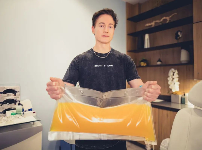 对于Tal而言,献血只是追随父亲的第一步。一个典型的19岁美国大学生,少不了社交派对、恋爱约会、泡夜店和打游戏。但Tal与四五十岁的父亲一样,每晚8点30睡觉;吃与父亲相似的食物:西兰花、胡萝卜、牛油果、莓果,以及各种补剂。偶尔有“吃块披萨”的念头,会让这个年轻人感到痛苦。如果一个女孩和Tal约会,他应该会自带蔬菜碗,在黄昏时回家准备入睡。此时,普通人的夜生活才刚刚开始。