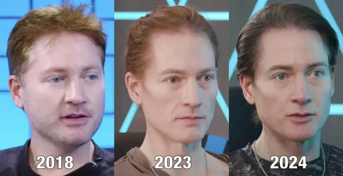 这位互联网时代发家的美国硅谷亿万富豪,近年沉迷于抗衰黑科技,每年花费200万美元,雇佣了一支30余人的医生团队,一起绘制他那“不死蓝图”。据他称,47岁的他已经将生理年龄追回了5.1岁,衰老速度也刷新到0.48,意味着他两年才老一岁。