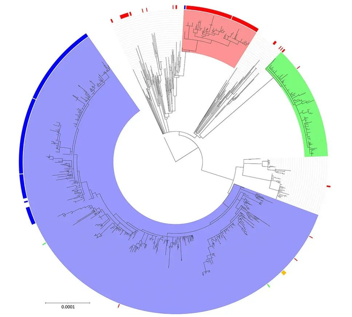 将现有菌株与2019年至今的数据进行对比,确认耐药基因质粒是否由外来整合进入群体。