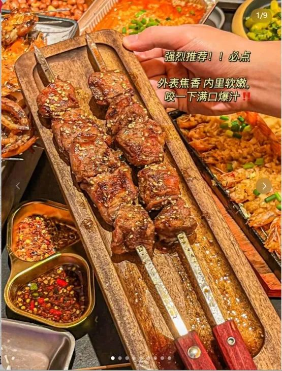 一方面,大油边取材自猪护心肉附近肋骨内侧带油膜的瘦肉,每头猪仅产 200 克左右,仅够制作 4-5 串,这种天然的稀缺性,让它与传统牛羊肉串形成了鲜明区隔,避免陷入 “万物皆可烤” 的品类泛化陷阱。