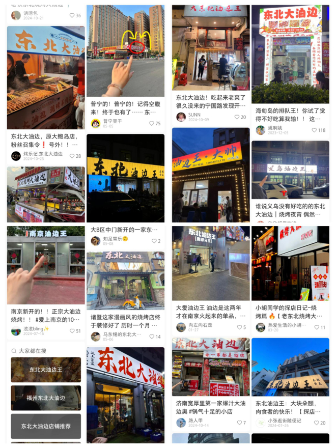 最近,走访市场时发现,东北大油边从东北烧烤摊一路“火” 向全国,各地接连冒出主打这一品类的烧烤店、夜市摊,且不少门店生意火爆。