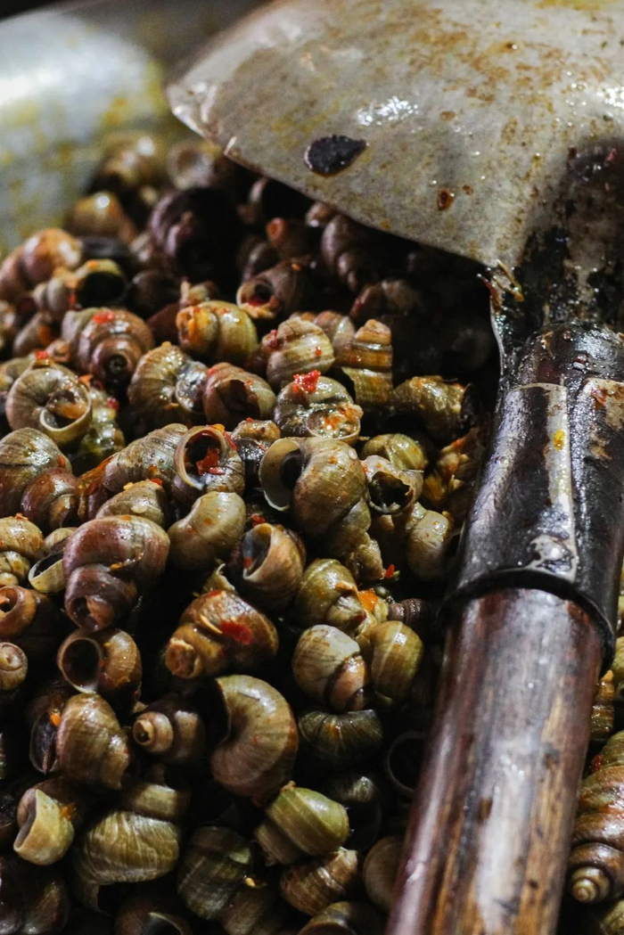 作为最早开始吃螺的地区之一,广西老饕对螺的情结之深、理解之充分,无人能出其右,不仅有炒、煮、烤、煲各种花样,甚至达成了“吃螺不见螺”的高深境界,送出了一样走遍全国的小吃——螺蛳粉。