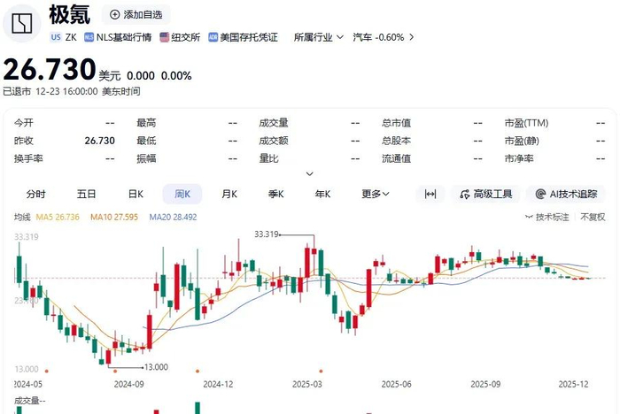 从2023年10月开始,极氪股价进入下行通道,2024年8月更是跌至13美元/股的最低点。