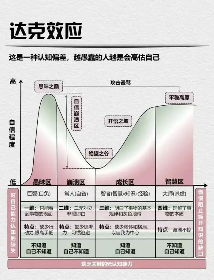 借用『达克效应』的图,已经翻越了愚昧之巅、爬出了绝望之谷,渐渐走上了开悟之坡。