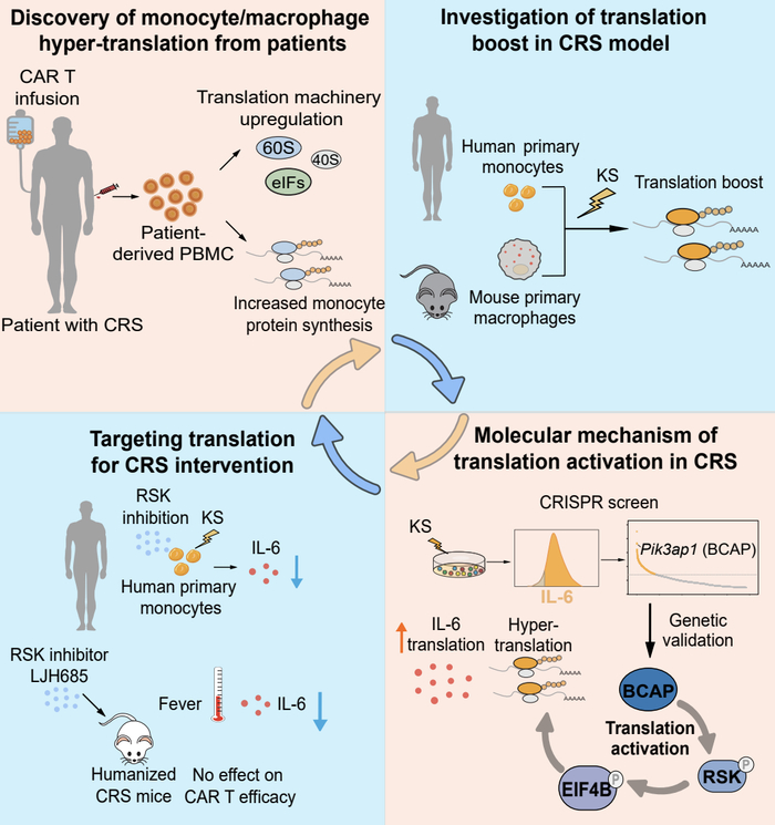 这些发现确立了过度翻译是 CRS 的关键致病特征,并突出了蛋白质翻译作为可药物干预途径,为 CRS 及其他炎症性疾病的治疗干预开辟了新思路。