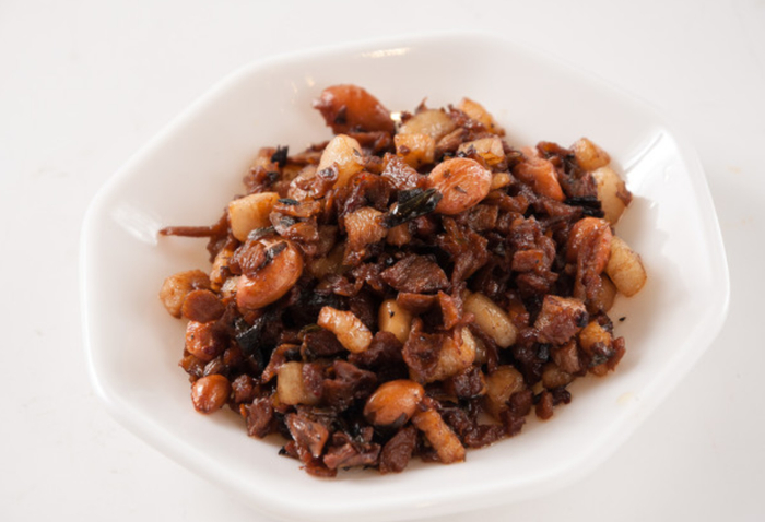 菜脯切碎成粒,可以配粥,味道略咸且带有萝卜香甜,也可与虾仁共处,形成一道菜脯虾仁的升级版杂咸。