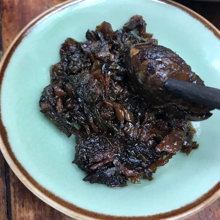 黑乎乎的橄榄菜在许多外来人眼中难以想象是道食物,而在潮汕人眼中却是粥的绝配。橄榄菜咸中带香、油滑柔腻,碎丝状菜丝与丰软的橄榄混杂,让人禁不住夹多一些到碗前。