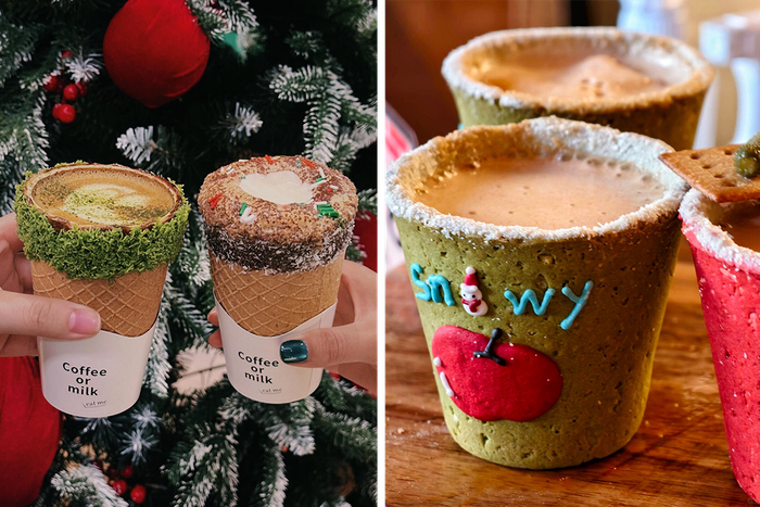 最近,曲奇、脆筒等做成的“能吃的咖啡杯”,乘着圣诞、元旦的东风,又火了一遍。