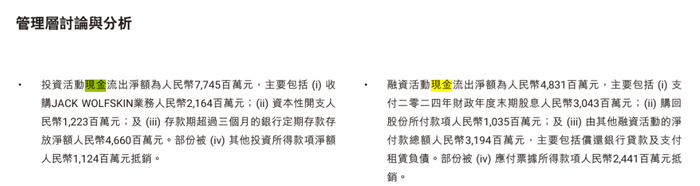 现金流承压之下,安踏不得不频繁举债,其资产负债率一度突破50%,截至2025年上半年末仍为41.03%,高于李宁、361度等同行约25%的水平。同期,安踏的投资活动现金流净额为-77.45亿元,主要用于并购支出,品牌扩张无疑也是一场高杠杆的豪赌。