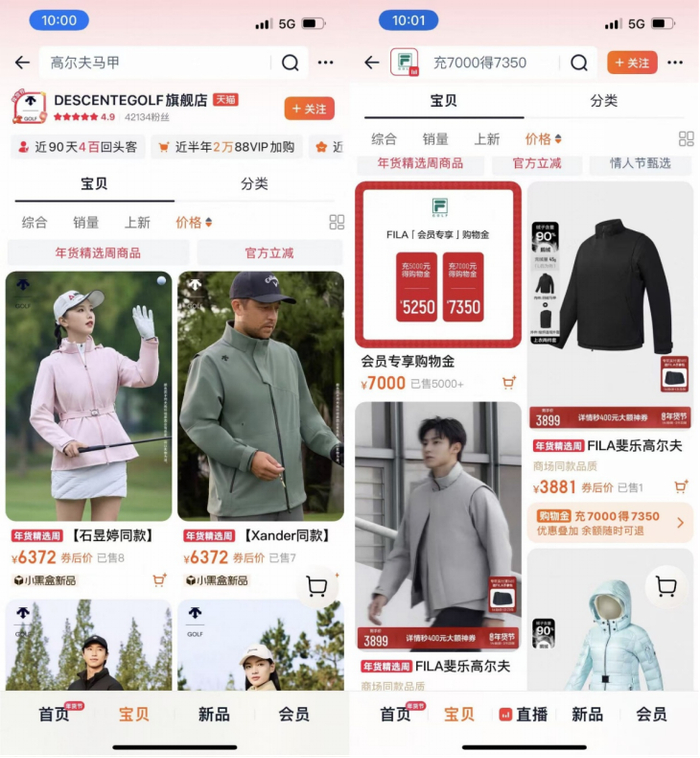 以迪桑特与FILA都已涉足的高尔夫品类为例,迪桑特高尔夫系列的产品定价在200-6000元不等,定位趋中高端;FILA同类产品定价在40-4000元之间,定位覆盖大众至高端,FILA想实现品牌和产品升级,就不得不从迪桑特的“碗里”抢客群。