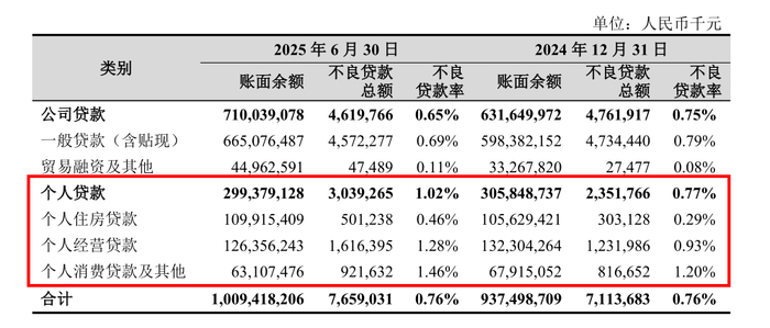 2025年中报显示,杭州银行个人贷款不良率从年初的0.77%攀升至1.02%,短短半年时间上升0.25个百分点,零售资产质量承压。