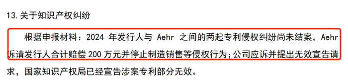 招股书显示,2024年9月,Aehr以联讯仪器侵犯其在中国申请的两项专利权,向苏州市中级人民法院提起诉讼。2024年10月,苏州市中级人民法院予以立案。