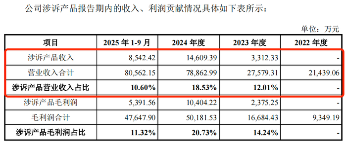 同期,涉诉产品毛利润占比分别为14.24%、20.73%和11.32%。