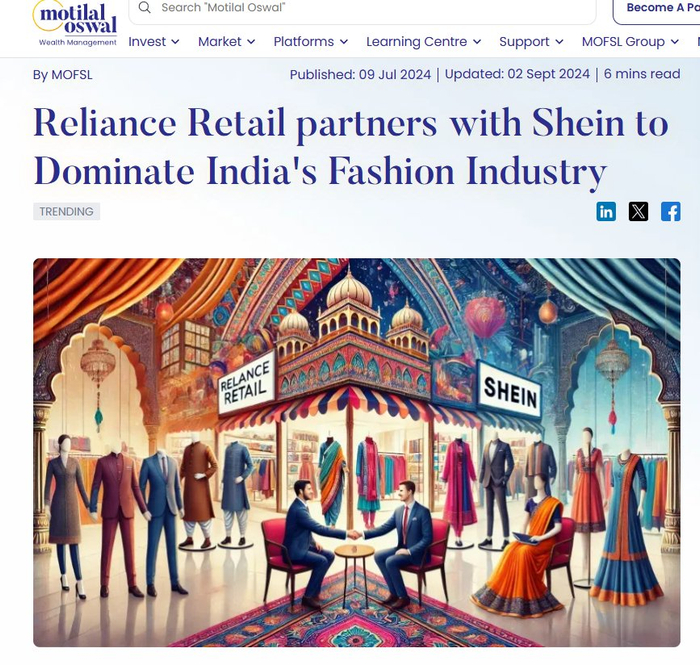 《Reliance Retail与Shein合作主导印度时尚行业》
