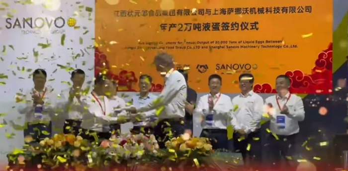 近日,在山东青岛举办的第二十二届(2025)中国畜牧业博览会暨2025中国国际畜牧业博览会上,江西状元郎食品集团有限公司与上海萨挪沃机械科技有限公司正式签约年产2万吨液蛋项目,携手共创蛋品加工进程。