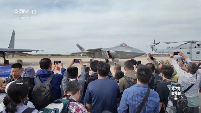 歼-20进行地面静态展示,军迷朋友、航空爱好者可以和它进行近距离接触,可以让大家看到我们国产隐身战斗机很强的作战能力。它是实机,近距离看非常有视觉冲击力。