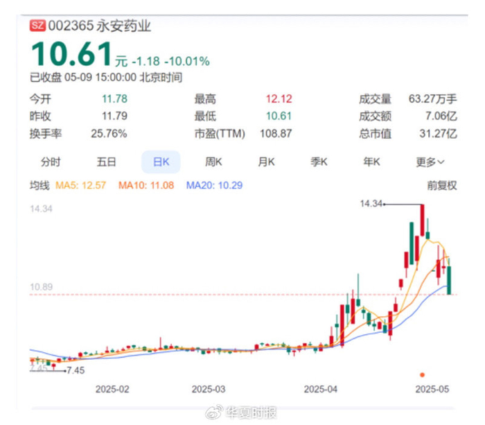 又一家A股上市药企实控人被立案调查,本周永安药业两度跌停,5月9日报收10.61元/股。