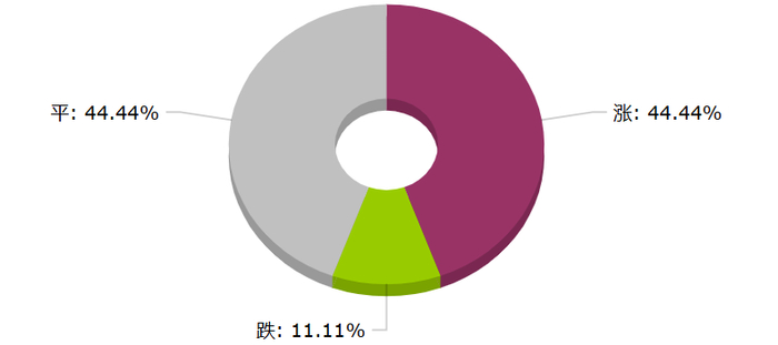 环比下降的商品共有2种,跌幅前2的产品分别为天然橡胶(-0.97%)、PET(-0.12%)。