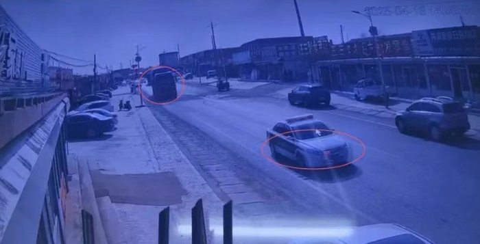 执法车在前方行驶(监控截图)监控显示,执法人员开着执法车疑似追逐安某某数公里后,半挂车侧翻,后方执法车掉头驶离现场,未下车施救。医院检查单据显示,安某某为车祸伤,临床诊断为胸部损伤、9根肋骨和左锁骨骨折等。
