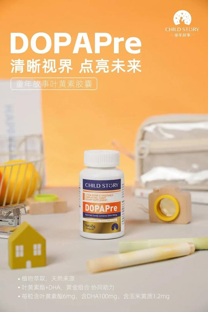 另外,随着电子屏幕使用低龄化,保护儿童视力健康已成为家庭刚需。童年故事聚焦视力健康维度,以“眼脑协同保护”为核心理念,打造更精准的儿童视力健康解决方案。旗下童年故事叶黄素DHA,每粒产品含有12mg叶黄素酯+120mgDHA,“双黄金配方”搭配DOPAPRE结构脂,促进多巴胺分泌,抑制眼轴拉长,给予眼脑健康发育的后盾力量。
