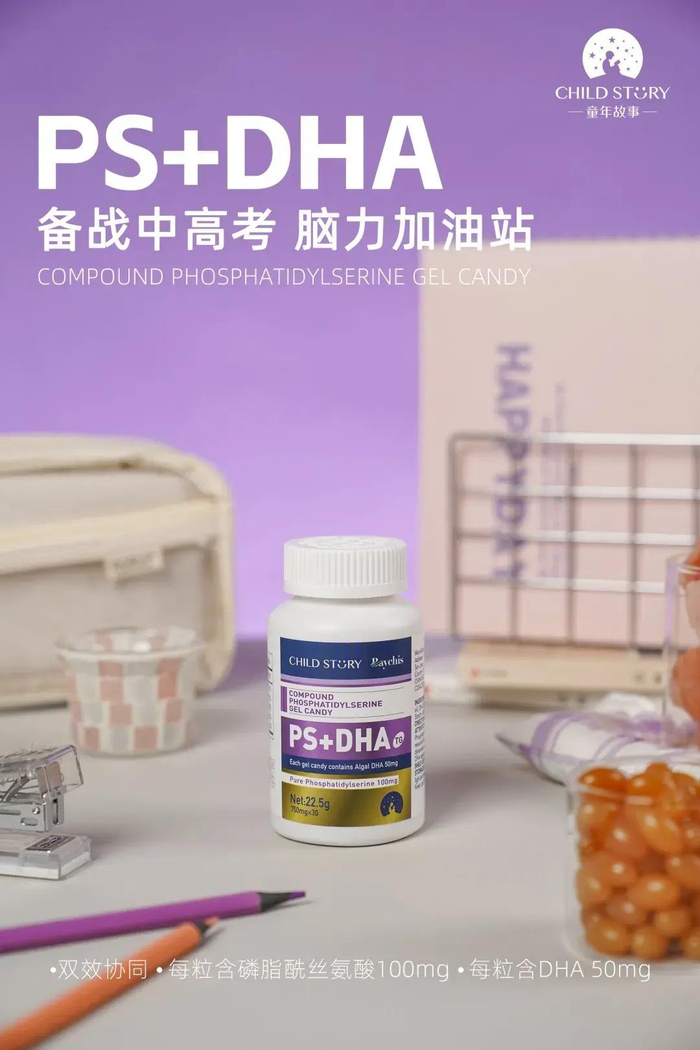 童年故事倍启智PS,针对3岁以上群体,产品每粒含磷脂酰丝氨酸100mg,DHA藻油50mg。其中磷酯酰丝氨酸,简称PS,是大脑的细胞膜的重要组成成分之一,被誉为继胆碱和“脑黄金”DHA之后的一大新兴“智能营养素”。