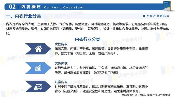华经产业研究院研究团队使用桌面研究与定量调查、定性分析相结合的方式,全面客观的剖析内衣行业发展的总体市场容量、产业链、经营特性、盈利能力和商业模式等。科学使用SCP模型、SWOT、PEST、回归分析、SPACE矩阵等研究模型与方法综合分析内衣行业市场环境、产业政策、竞争格局、技术革新、市场风险、行业壁垒、机遇以及挑战等相关因素。根据内衣行业的发展轨迹及实践经验,精心研究编制《2025-2031年中国内衣行业市场深度分析及投资战略咨询报告》,为企业、科研、投资机构等单位投资决策、战略规划、产业研究提供重要参考。