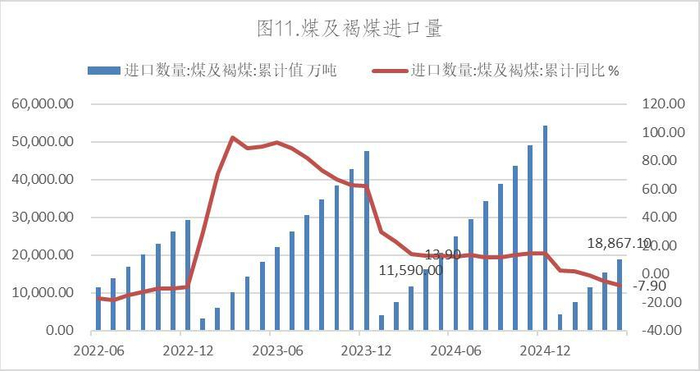 数据来源:Wind,英大期货2025年5月份煤及褐煤进口3604万吨,同比下降17.7%;1-5月份煤及褐煤进口18867.1万吨,同比减少7.90%。