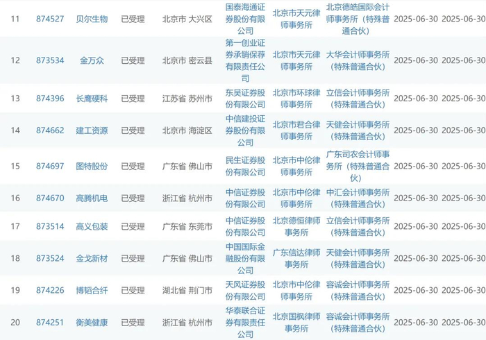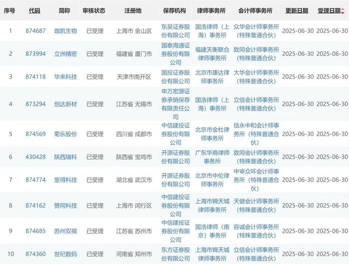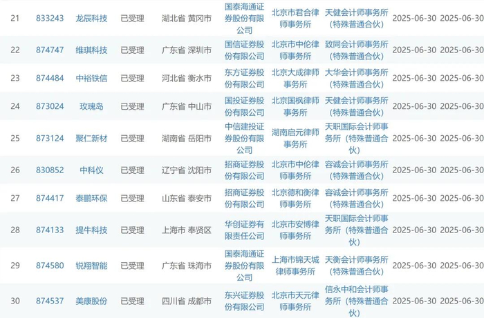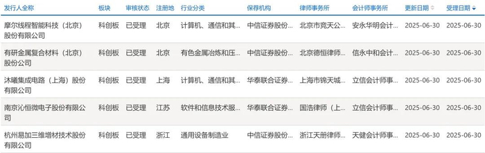 6月最后一天,三大交易所共新增受理41家IPO企业!
