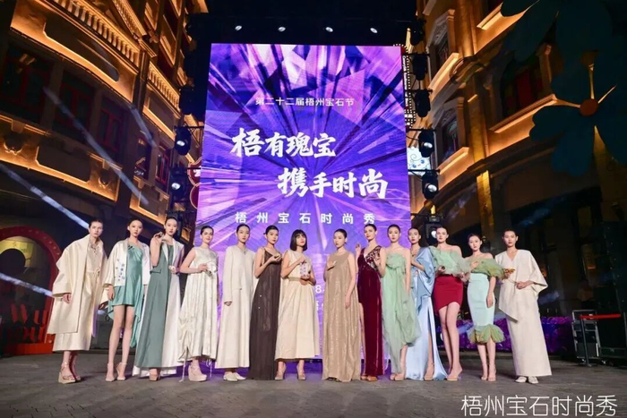 时尚秀围绕“中式美学”“复古美学”与“数字迷境”三大篇章展开,通过30套珠宝新品的创意呈现,将本土产业资源转化为极具感染力的文化体验。活动现场不仅吸引众多行业嘉宾与市民游客驻足观赏,更通过线上线下联动传播,有效放大梧州城市形象,带动夜间消费与周边文旅业态活跃度。