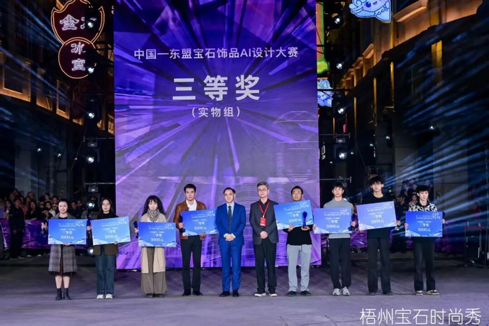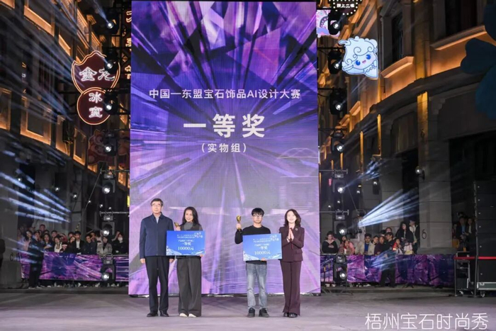 科技应用为活动注入全新的体验维度,“全民AI设计获奖作品虚拟走秀”以虚拟技术拓展珠宝的呈现边界,带来沉浸式数字审美体验,而“中国—东盟宝石饰品AI设计大赛”颁奖及作品展示则让观众直观感受到设计驱动的产业价值,赛事与秀场深度融合,推动创意价值与宝石文化双向赋能,实现宝石产业影响力全面提升。