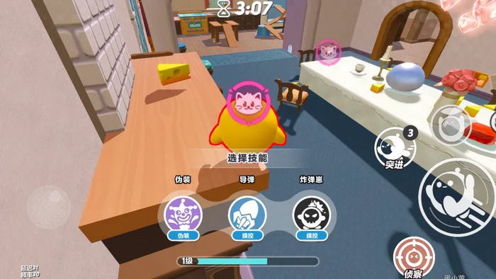 如果游戏开始被分到猫方阵营,开局的核心能力选择也必不可少。选择伪装技能的蛋仔可以化作一块奶酪,以猎物的形态出现,迷惑鼠方成员。此外,还能伪装成鼠方队友,杀对方一个措手不及。两方在移动时会持续加速,猫方的体积和速度都比鼠方更有优势,只需碰到对方,就能把他们困在泡泡内,被困敌人此前收集的奶酪也会全部落地。开启侦擦技能后,猫方还能看到所有鼠方的位置,为抓捕提供强有力的帮助,快去阻止他们搬运奶酪吧!