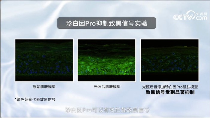 据了解,为了测试珍白因Pro的有效性,欧诗漫通过3D皮肤模型模拟人体皮肤,经过大量缜密实验证明珍白因Pro能有效拦截致黑信号。此外欧诗漫在还进行了浓度实验,在成分浓度为0.01%时,可以明显看到黑色素分布显著减少。珍白因Pro的出现,让世界看到了中国的科研力量。