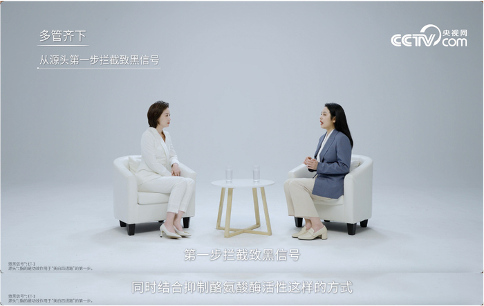 这支科研视频中,中科院专家一针见血地指出了“拦截致黑信号是美白源头”。并由欧诗漫珍珠研究院副院长杨安全讲解珍白因Pro是如何从源头拦截致黑信号,通俗易懂地解释了珍白因Pro这一中国成分的美白奥秘。