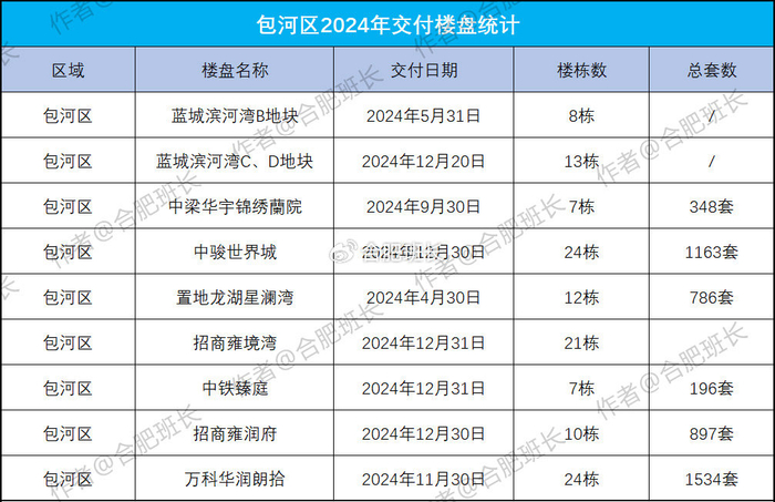 那2024年按计划会有哪些楼盘交付?据班长不完全统计,2024年合肥预计将有48个项目迎来交付,我们一起来分区域了解一下(数据为班长手工统计,具体交付情况以项目通知为准)。
