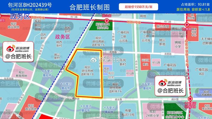 包河区BH202439号地块位于金寨路以东、龙图路以南,占地93.81亩,为居住用地,容积率1.8。