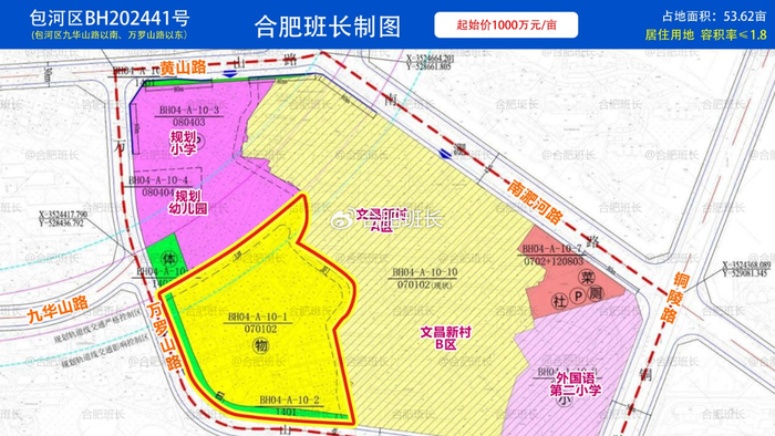 包河区BH202441号地块位于九华山路以南、万罗山路以东,占地53.62亩,为居住用地,容积率1.8。