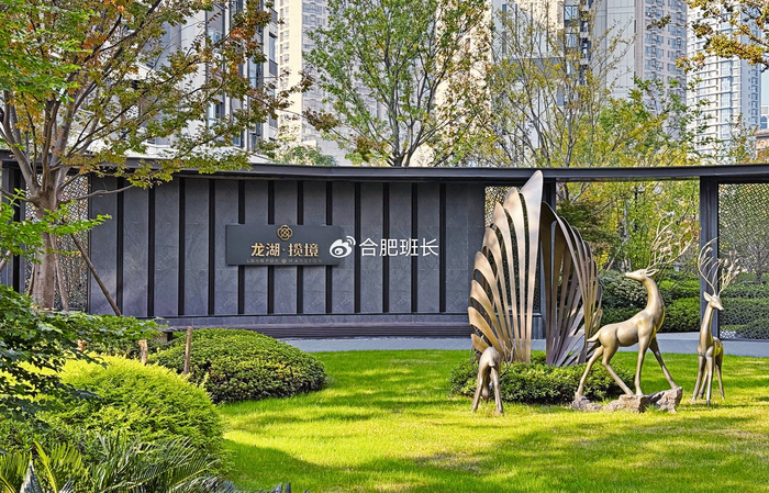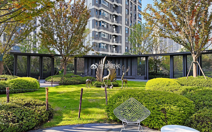 进入园区,一座由雕塑、绿地与半圆凉亭构成的小广场便撞入眼帘。草地上,小鹿雕塑憨态可掬,展翅造型的雕塑则尽显艺术格调,四周绿植品类丰富、错落有致。
