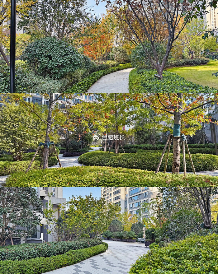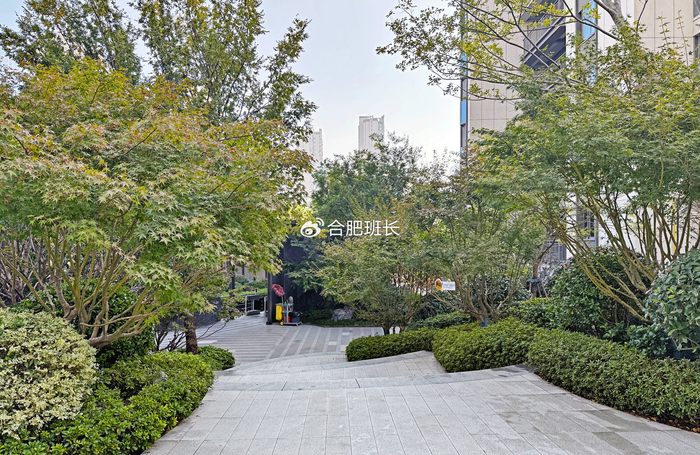 虽然踩盘时西侧主出入口还未放行,但西门两侧的绿化格外亮眼,成排的斜飘乌桕交织成一条别致的绿植隧道,春夏时节满目苍翠,到了秋冬便换上姹紫嫣红的盛装,景致十分动人。