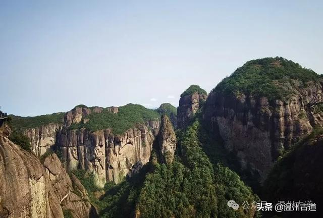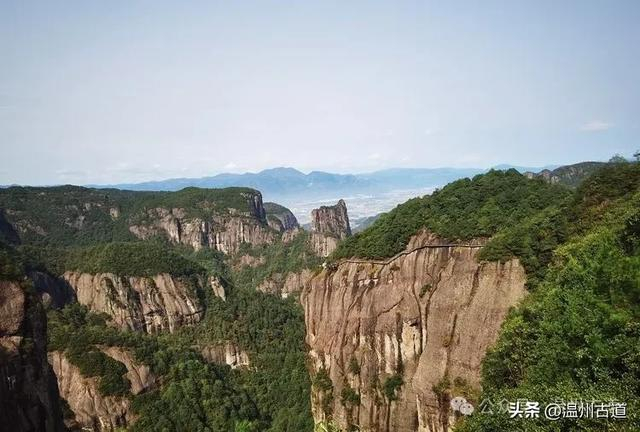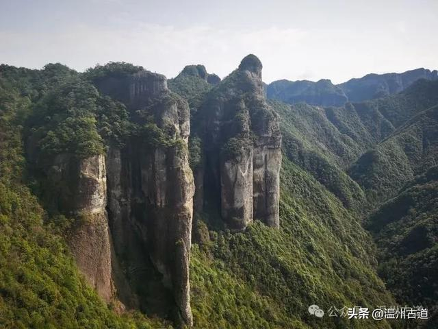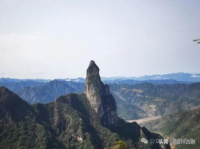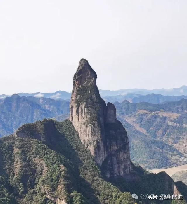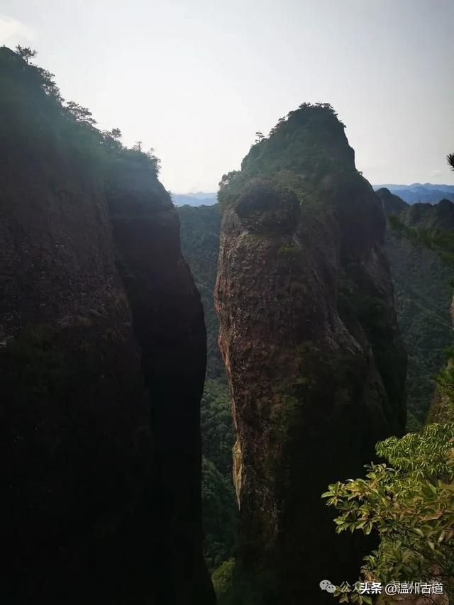 雨后天晴的神仙居,能见度非常好,在莲花台上远远看去,海拔919米高的天柱峰,峰高插云,就如一尊双手合十的佛像,故又名观音峰。