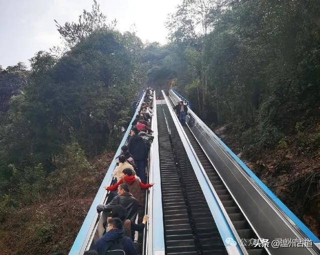 因计划从神仙居南门上山,北门下山,走完整个神仙居景区,为节省体力,直接乘坐南天索道,再乘坐两台高速电梯,即到达山上景区栈道!